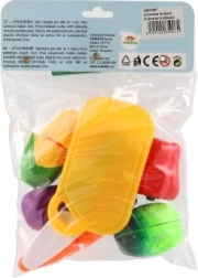 Ideelt til legekøkken, købmandsleg eller madlavning. Sættet understøtter udvikling af hånd–øje-koordination, læring af farver og former samt grundlæggende sund kost gennem leg.