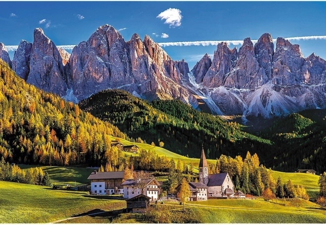 Tag til den maleriske dal Val di Funes i hjertet af Dolomitterne, og læg et betagende panorama med kraftige farver og dramatiske bjergtinder. Takket være præcise udskæringer og solide brikker holder billedet perfekt sammen, og lægningen er flydende og behagelig.