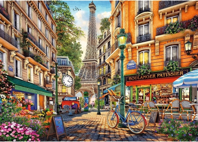 Puslespil med 2000 brikker med motiv af en pariser-gade. Kalandreret kvalitetspapir, størrelse 96,1 × 68,2 cm, fremstillet i Polen af miljøvenlige materialer.