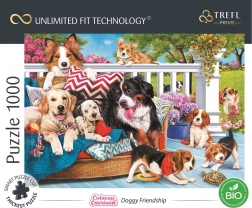 Kast dig over et muntert motiv fyldt med forskellige hunderacer på en hyggelig veranda. TREFL-puslespil med UFT-teknologi lader dig ikke kun samle et selvstændigt billede med 1000 brikker, men også forbinde flere UFT-motiver til en original collage – det er dig, der sætter grænserne.