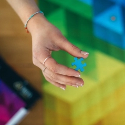Hver brik har en unik form og holder sikkert sammen, så det færdige billede kan flyttes bekvemt. Produktion i kvalitetsblåt karton sikrer præcis pasform, dybe farver og lang levetid. Derudover glæder den biovenlige emballage – uden ydre plastfolie og med en indre pose, der er fuldt biologisk nedbrydelig og komposterbar.