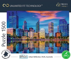 Bring stemningen fra en moderne metropol hjem med motivet af byens refleksion i Perth, Australien. TREFL UFT-serien løfter den klassiske puslespilsoplevelse til næste niveau – takket være den særlige stansning kan du kombinere flere UFT-puslespil og skabe din egen storformatcollage uden begrænsninger.