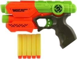 Pistolen er lavet af holdbar plast, hvilket sikrer lang levetid. Det ergonomiske design sikrer et behageligt greb for små hænder, uanset om dine børn sigter mod mål eller har en venlig konkurrence med venner.