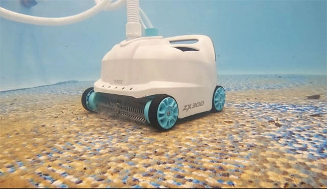INTEX ZX300 er en pålidelig automatisk støvsuger, der holder din pool ren hele sæsonen. Med fire hjul, kraftig sugeevne og to roterende børster klarer den sand, blade og aflejringer på både bund og vægge. Den tilsluttes direkte til filterpumpen og arbejder helt automatisk – du skal blot nyde vandet.