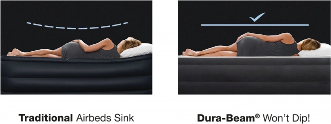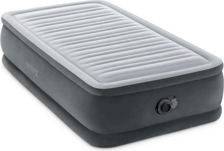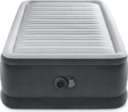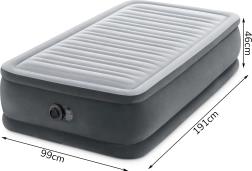 Den oppustelige seng Intex Deluxe er et fremragende valg til gæster, udlejning og ferie. Den forhøjede konstruktion på 46 cm gør det lettere at rejse sig, og den bløde, flokkede overflade giver en behagelig følelse og holder lagnet på plads. Indvendige forstærkninger med Fiber-Tech af slidstærke polyesterfibre holder madrassen fast og formstabil, mens Dura-Beam-systemet fordeler vægten jævnt og understøtter korrekt justering af rygsøjlen.