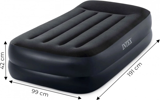 Denne enkeltmands oppustelige madras fra INTEX tilbyder komfort som en klassisk seng takket være de avancerede teknologier Fiber‑Tech og Dura‑Beam. Den solide indre konstruktion modvirker vuggen og gennemhæng, og den forhøjede højde på 42 cm gør det lettere at komme op og øger komforten. Den velourbeklædte, let riflede overflade er blød at røre ved og hjælper med at holde lagnet på plads.