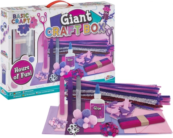 Det rige indhold rummer alt, hvad der behøves – fra piberensere og pomponer over skumfigurer, stjerner og perler til selvklæbende øjne samt almindelig og glimmerlim. Takket være den transportable kasse med hank er opbevaring og transport nem og overskuelig.