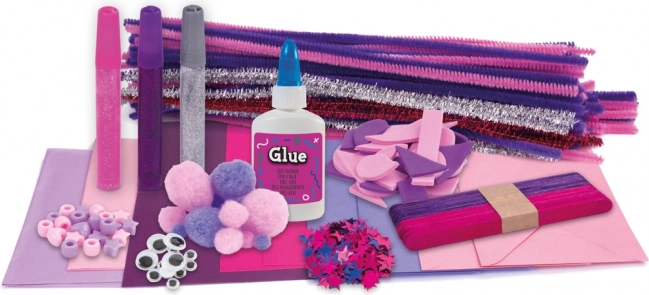 • Komplet sæt til børns kreative aktiviteter i lyserøde og lilla nuancer