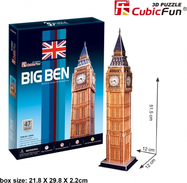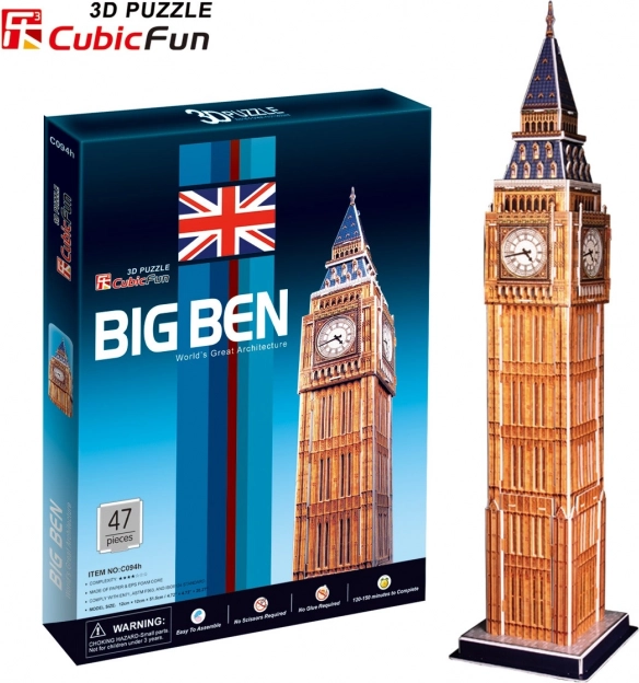 Oplev en sjov og kreativ byggeoplevelse med CUBICFUN 3D-puslespil Big Ben. Modellen af robust skumplade med lamineret tryk samles uden lim og saks – en ideel familieaktivitet og stilfuld dekoration. Realistisk udformning, nem udtagning af forstansede brikker og sværhedsgrad 4/5 vil glæde alle arkitekturelskere.