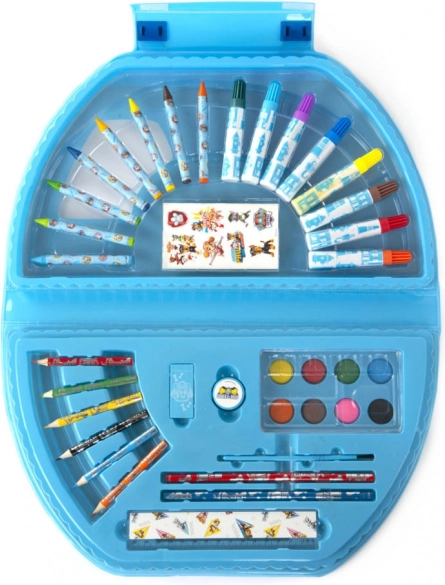 Metal malekuffert Paw Patrol – indeholder tuscher, voksfarver, farveblyanter, vandfarver, almindelige blyanter, lineal, viskelæder, blyantspidser, pensel og klistermærker.