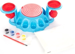 Sættet indeholder gips, forme, vandfarver, pensel og et malerhjul, så du kan gå i gang uden ekstra indkøb.