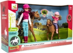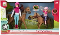 Dette fantastiske sæt er et ideelt valg for ethvert barn, der elsker heste og drømmer om at blive rytter. Sættet inkluderer to dukker klædt i ridetøj, inklusive hjelme, klar til eventyr. Kvalitets- og holdbare materialer sikrer, at sættet holder til selv det mest krævende leg.