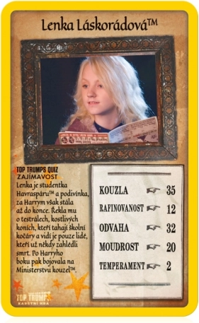 Dyk ned i det femte år på Hogwarts med Top Trumps-udgaven Harry Potter og Fønixordenen. I sættet finder du både helte og skurke – fra Harry, Ron og Hermione til professor Umbridge, Bellatrix Lestrange og Lucius Malfoy. Hvert kort har sine egenskaber, som afgør, hvem der er modigst, klogest eller mest lumsk.