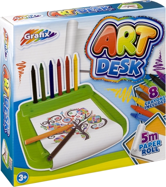 Tegnebordet fra Grafix bringer sjov og kreativitet ind i hvert børneværelse. Dette komplette kreative sæt understøtter udviklingen af finmotorik og kreativitet hos små kunstnere. Børn kan let tegne, rive papir af rullen og fortsætte deres aktivitet. Sættet er praktisk og let at transportere, hvilket gør det ideelt til brug både hjemme og på farten.