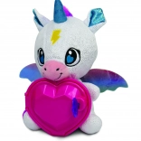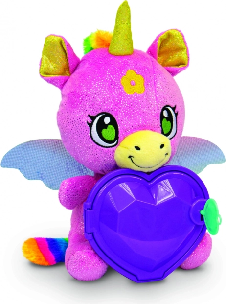 Hvad du finder indeni: armbånd med overraskelse, ring med overraskelse og klistermærker. Børn kan gemme deres små skatte i enhjørningens hjerte og skabe deres egne hemmelige historier. Plyslegetøjet er blødt, sikkert og velegnet til daglige kram og kreativ leg.