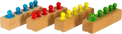Dette træ-Montessori-puslespil med farverige cylindre er et ideelt redskab til alsidig udvikling af barnet. Hver farve repræsenterer en anden højde og bredde, hvilket understøtter logisk tænkning, sortering og sammenligning. Det enkle design og de naturlige materialer harmonerer perfekt med Montessori-filosofien.