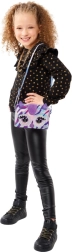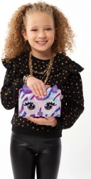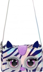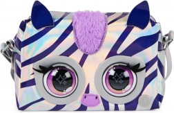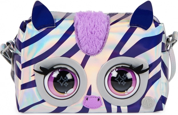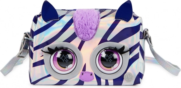 Den metalliske håndtaske fra Purse Pets vil glæde børn med sit unikke, stilfulde design og interaktive funktioner. Tasken er lavet af skinnende sølvstof med holografiske lilla striber, der skaber et modetilstrækkeligt udseende. Takket være berøringssensoren reagerer tasken med blink og udsender op til 30 forskellige lyde, hvilket gør den til en sjov ledsager hver dag.