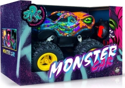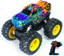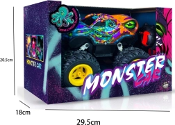 RC Monsterbil 2.4G med lyseffekter bevæger sig til venstre, højre, frem og tilbage. Maksimal hastighed 5 km/t. Frekvens 2405 MHz – 2475 MHz, maksimal radiofrekvens-effekt 5 mW, rækkevidde for fjernbetjeningen 20 m.