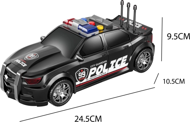 Denne realistiske politibil giver børn spændende leg fuld af missioner og heltehistorier. Takket være lys- og lydeffekter skaber den en troværdig atmosfære af indsatser og forfølgelse, hvilket stimulerer fantasien og interaktiv leg.