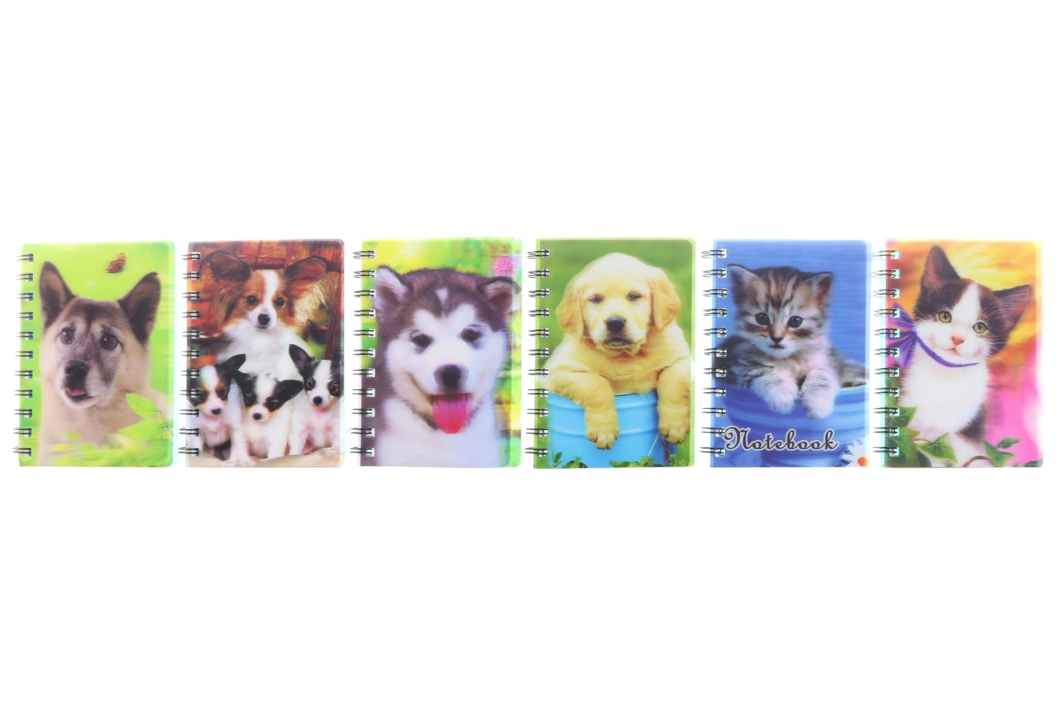 Stilfuld spiralnotesbog i A6 med et sødt 3D‑motiv af hunde og katte, som glæder både børn og voksne. Den tilbyder linjerede sider for overskuelige noter, kompakt størrelse til håndtaske eller rygsæk og solid spiralbinding for nem bladren.