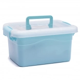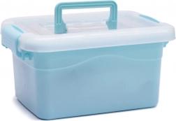 Indholdet opbevares nemt i en robust boks med låg og håndtag, så ingen dele bliver væk.