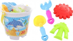Giv børnene masser af sjov i sandkassen og på stranden. Det komplette sæt med en spand på ca. 17 cm i højden indeholder alt, hvad der skal til for at bygge slotte og lave figurer – fra skovl og rive til to sandforme. Den praktiske netpose gør det nemt at bære og at tørre delene efter leg.