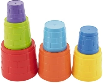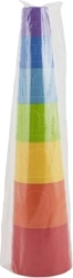 Denne farverige stabelpyramide giver børn masser af sjov og læring på én gang. Syv plastkopper i forskellige størrelser kan nemt bygges til et højt tårn eller stables ind i hinanden – det træner logik, tålmodighed og finmotorik.