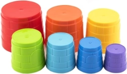 Kopperne kan bygges til et højt tårn eller indlejres i hinanden. Børn udvikler dermed finmotorik, koordination og logisk tænkning.