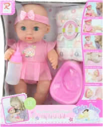 Denne interaktive babydukke glæder alle børn, der elsker rolleleg som forældre. Når batterierne er aktiveret, afgiver dukken lydeffekter, og takket være tissefunktionen bliver legen endnu mere realistisk. Sættet indeholder alt, hvad der er nødvendigt til plejen – fra fodring til bleskift.