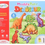 Dette kreative sæt til fremstilling af magneter med dinosaurer giver børn glæden ved at skabe trin for trin. Rør blot gipsen op, hæld den i formen med seks forskellige dinosaurmotiver, lad tørre, mal med de medfølgende farver og sæt magneten på. Resultatet er glade, håndmalede magneter, der pynter på køleskab eller magnettavle.