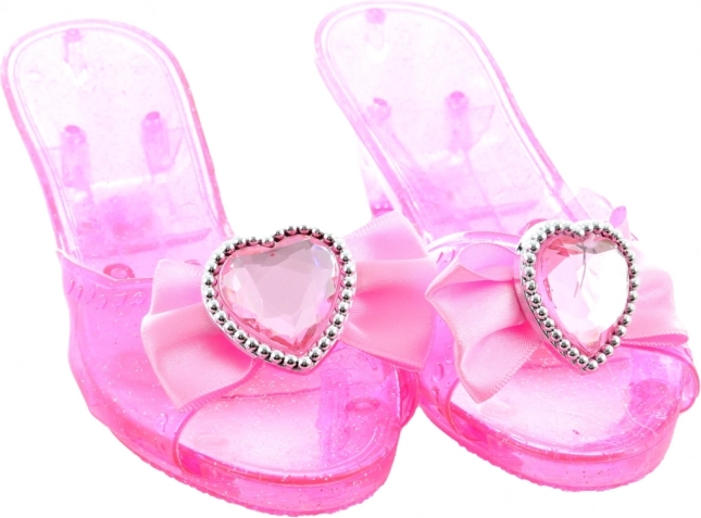 Rosa sko med høj hæl samt dekorative hjerter og små sløjfer er ideelle til enhver lille prinsesse.