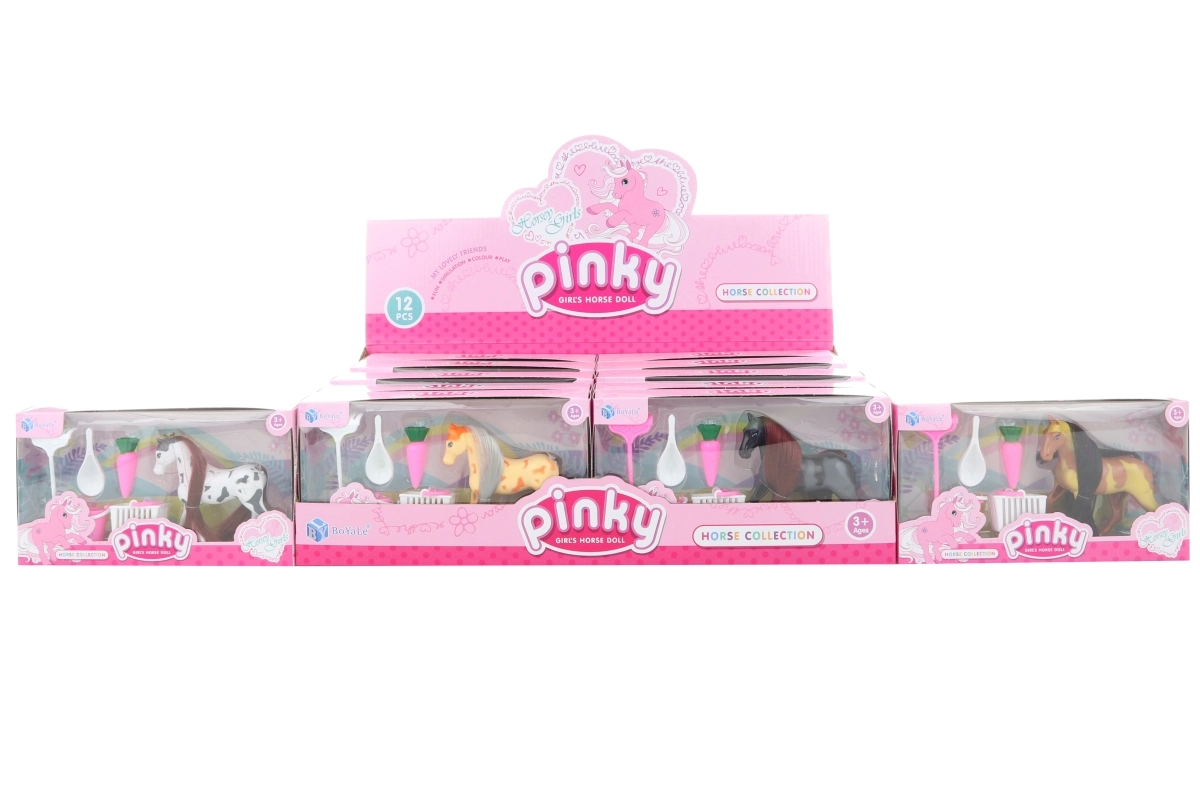 Sød børstehest med et rigt sæt tilbehør til kreativ leg. Børn kan passe deres egen lille hest, børste manen, fodre den og skabe staldscener. Ideel legetøj til at udvikle fantasi og finmotorik. Pakken indeholder en hest ca. 8 × 8 cm, en gulerod, en spand og andet tilbehør. Velegnet fra 3 år.