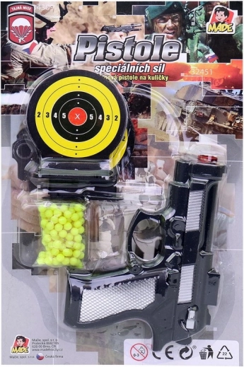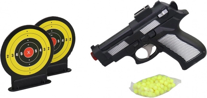 Denne kuglepistol er det perfekte legetøj for små skytter, der gerne vil øve sig i at ramme plet. Med de to medfølgende mål kan børn konkurrere med venner eller forbedre sig på egen hånd. Den lette og brugervenlige konstruktion i plast understøtter sikker og sjov leg.