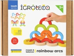 Denne alsidige træmosaik tilbyder uendelige legemuligheder – fra at bygge tårne og broer til at lægge symmetriske mønstre og klare balanceopgaver. De robuste, glat-slebne dele i strålende farver indbyder til udforskning og lærer børn fokus og øje–hånd-koordination.