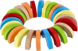 Regnbuebuer og halvcirkler kan stables til tårne, broer og balanceudfordringer. Børn udvikler koncentration, stabilitet og rumlig forståelse.
