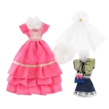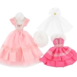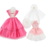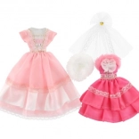 To forskellige sæt kjoler, hver med sine egne detaljer, der giver hver dukke et unikt look.
