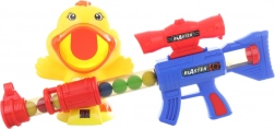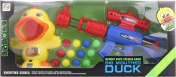 Interaktivt legetøj Pistol med and er en ideel måde at underholde og samtidig uddanne dine børn på. Dette sæt inkluderer en pistol, der skyder skumkugler direkte ind i mundingen af en glad and. Hver gang en kugle rammer målet, tæller anden det, hvilket motiverer børnene til at forbedre deres færdigheder.