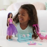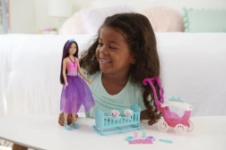 Dyk ned i fantasiverdenen med Skipper™ eventyr-legesættet. Sættet inkluderer Skipper™-dukken i en smuk lyserød top og en lilla tylskørt, komplet med en blå sløjfe i håret. Dukken er helt ideel til ethvert barn, der vil lege omsorgsgiver, men det er vigtigt at huske, at dukken ikke kan stå af sig selv.