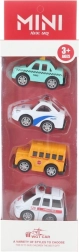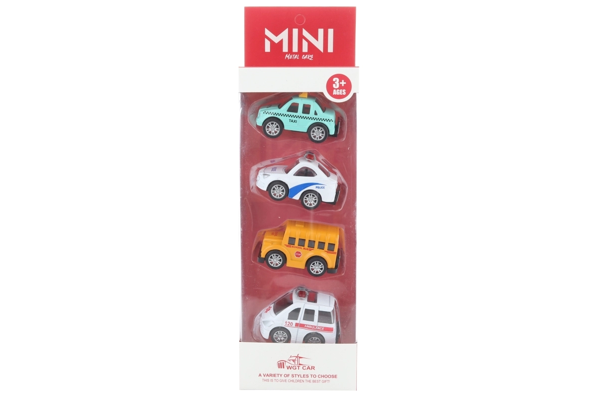 Opdag sjov for små racerkørere med et sæt metalbiler. Pakken indeholder 4 holdbare biler med en længde på ca. 6,5 cm, ideelle til små børnehænder. Et godt valg til legende fantasi, samling og ræs, velegnet til børn fra 3 år.