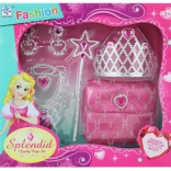 Skønhedssæt til små prinsesser indeholder en håndtaske på cirka 13 x 12 cm, en krone, et scepter, en halskæde og øreringe. Pakkestørrelse cirka 30,5 x 28 x 6 cm. Alder 3+