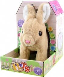 Plyskanin med batteri. Kaninen hopper, laver lyde og vifter med halen. Drives af 2 AA-batterier (medfølger ikke). Kaninens mål ca. 15 x 19 x 7,5 cm. Emballagens mål ca. 13 x 19 x 18 cm (fungerer også som et lille hus). Alder 3+.