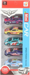 Dette sæt indeholder fem forskellige bilmodeller, som vil glæde enhver lille chauffør. Takket være den praktiske emballage er det ideelt som gave, til rejser og til at udvide samlingen derhjemme. Bilernes plastkonstruktion gør dem lette at håndtere og de støtter udviklingen af fantasi og finmotorik.