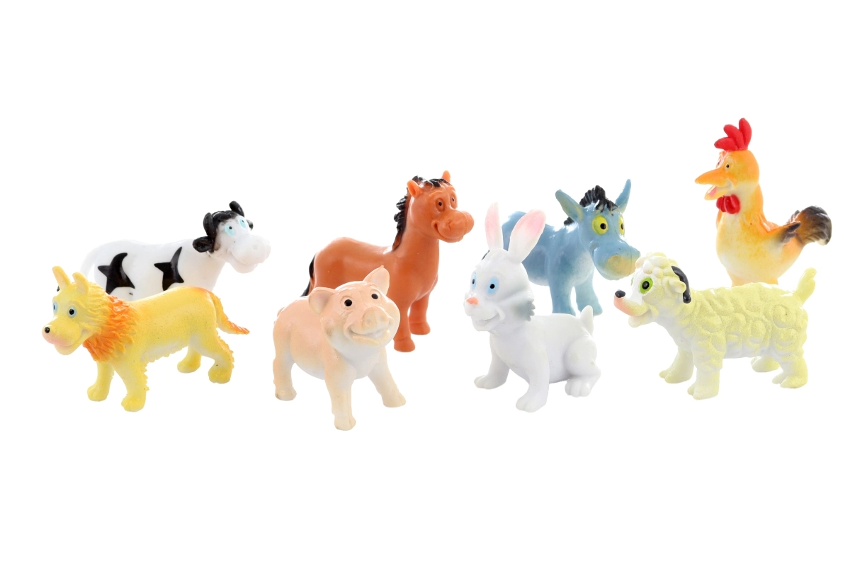 Med dette muntre sæt husdyr får børn masser af sjov og lærer samtidig at genkende de enkelte dyrearter fra gården. Figurerne er lavet af robust plast, har en behagelig størrelse til en børnehånd og egner sig både til selvstændig leg, legekøkkener, små gårde eller som supplement til andre byggesæt.