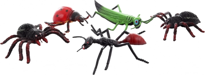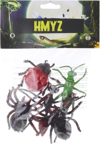 - 5 stk: mariehøne, græshoppe, myre og 2× edderkop