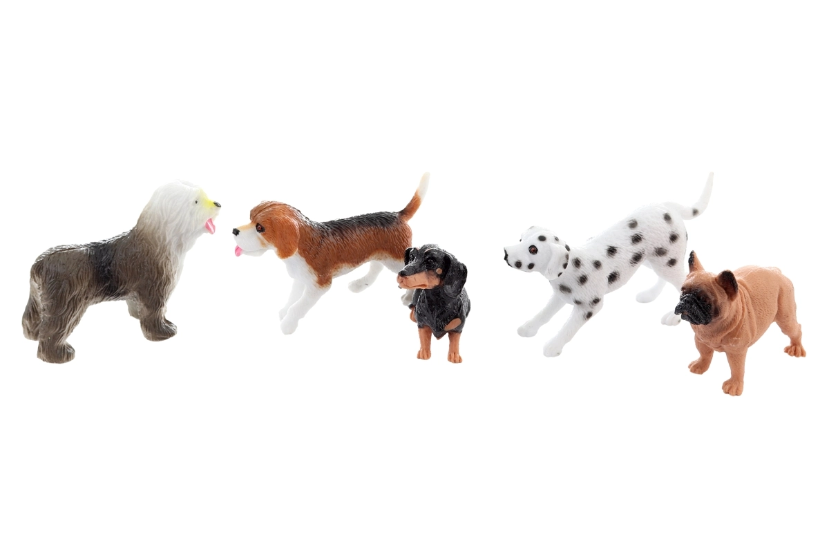 Hver hund måler cirka 7 cm (afhængigt af race) og er lavet af holdbar plast, der tåler daglig leg. Pakken med mål på ca. 15 × 18 × 4 cm indeholder fem forskellige figurer, så børn kan udvide deres dyresamling og lære at kende de enkelte racer.