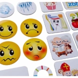 Magneterne har afrundede hjørner for sikker og nem håndtering af små fingre. På magneterne kan man også skrive med en sletbar tusch, hvilket giver yderligere mulighed for kreativ brug.