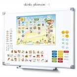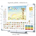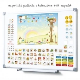 Den magnetiske kalender har en magnetisk underlag i målene 420 x 297 mm, som nemt kan fastgøres på køleskabet eller en anden metalflade. Pakken indeholder 114 magneter, der giver dine børn kreativitet og sjov:
