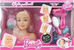 Oplev det sjove børnesæt til skønhed med frisørhoved, som vil glæde alle små stylister. Sættet indeholder en funktionel batteridrevet føntørrer, kam, hårspænder og andre accessories til endeløs frisering og pynt. Sikker udførelse, ideel til børn fra 3 år.