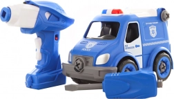 Opdag et smart legetøj, der kombinerer byggesæt og RC-bil i ét. Børn skiller først politibilen ad og samler den igen, hvor de øver fingerfærdighed og logik. Når motoren fra boremaskinen sættes i chassiset, bliver den til en fjernstyret bil med kørsel frem/tilbage og lyde, som skaber realistisk leg.