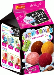 Lav dine egne duftende badebomber med en lækker chokoladeduft og nyd et hjemligt spa. Sættet indeholder alt, hvad du skal bruge til at lave 4 bomber og giver en brusende badeoplevelse, blødere vand og pleje af huden takket være havsalt og naturlig olie. Ideel kreativ underholdning for børn fra 9 år og voksne.